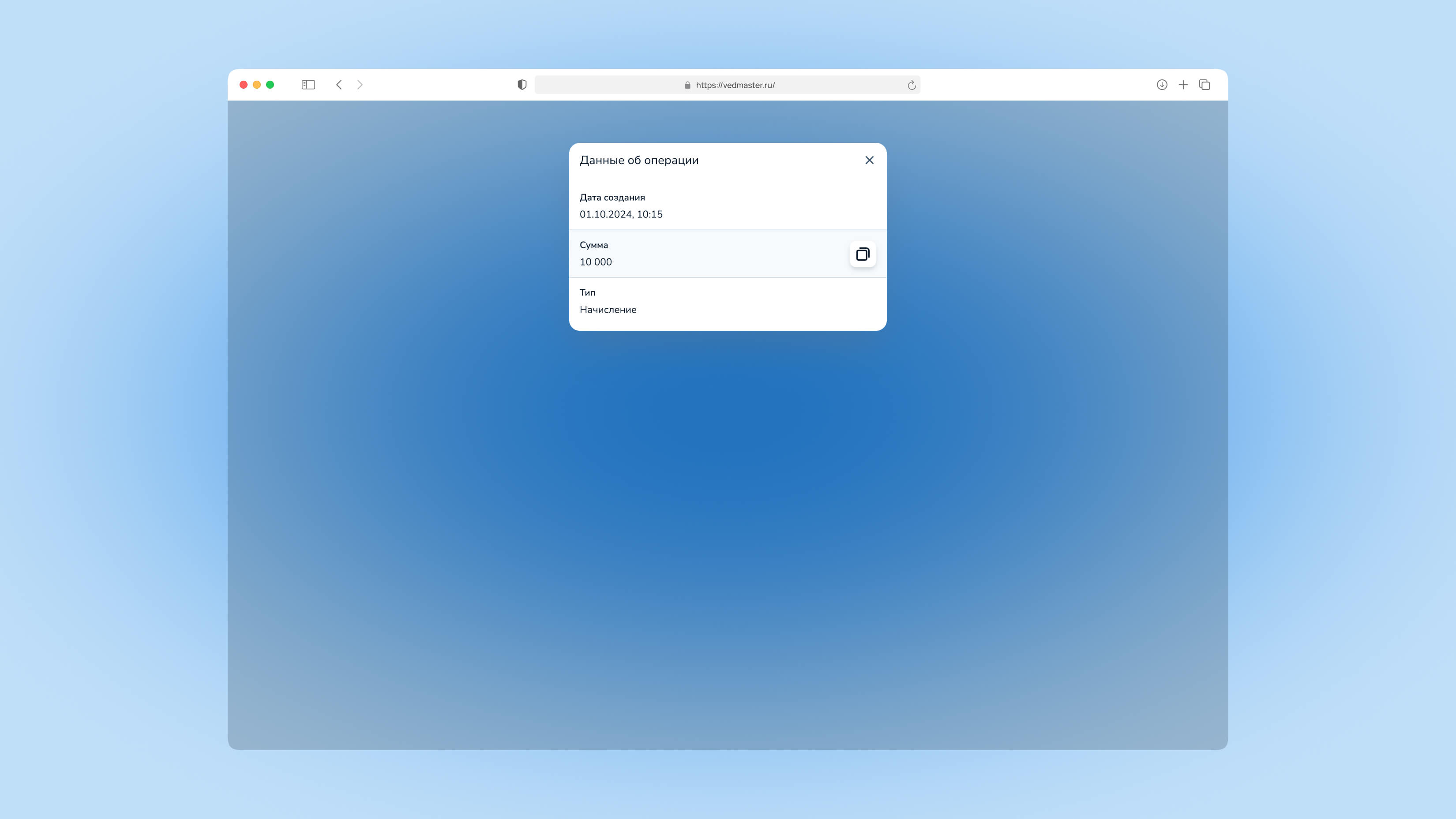 Рисунок 4. Модальное окно с деталями операции