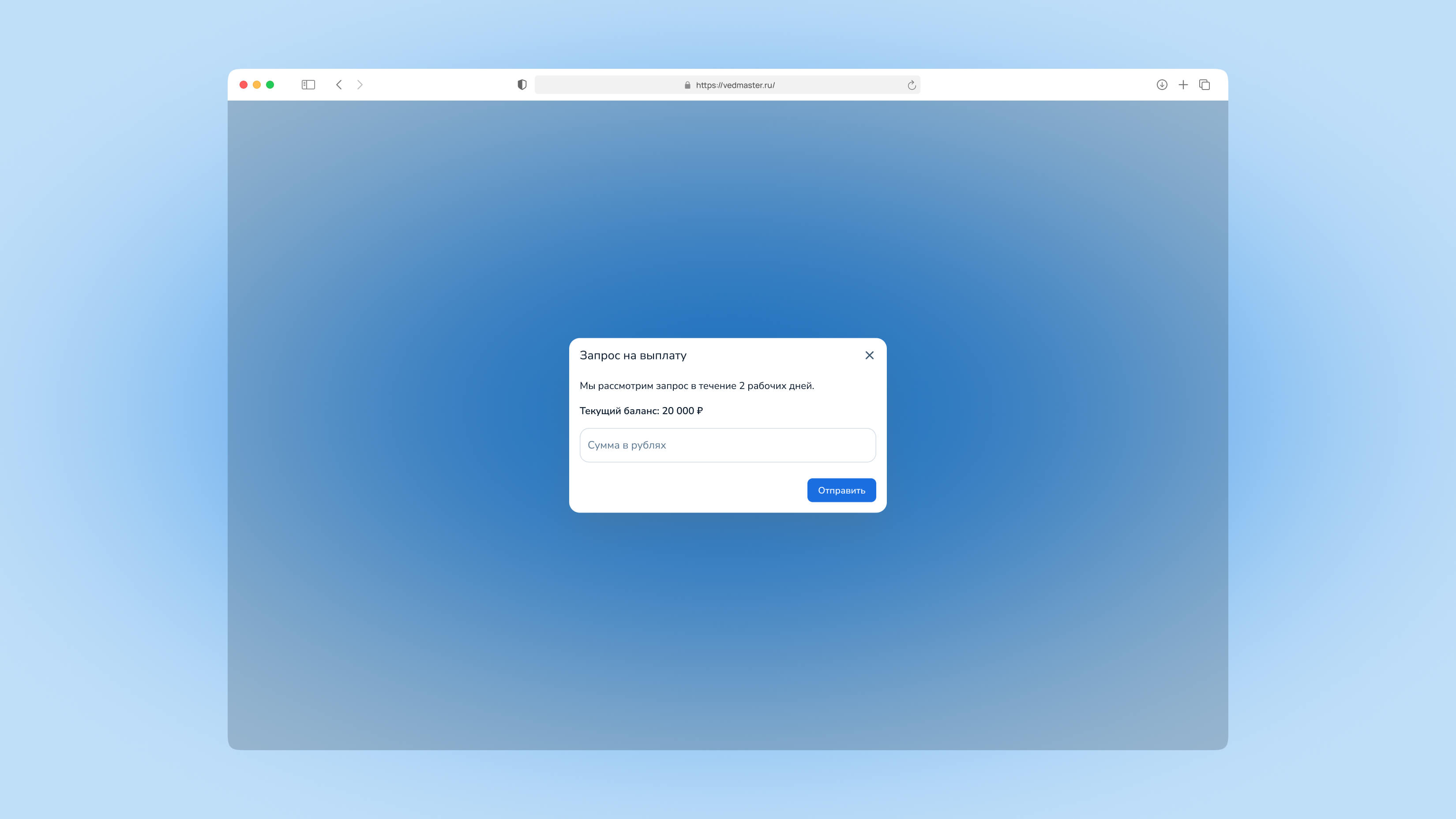 Запрос одобрен и выплата произведена. Средства переведены на указанные реквизиты.