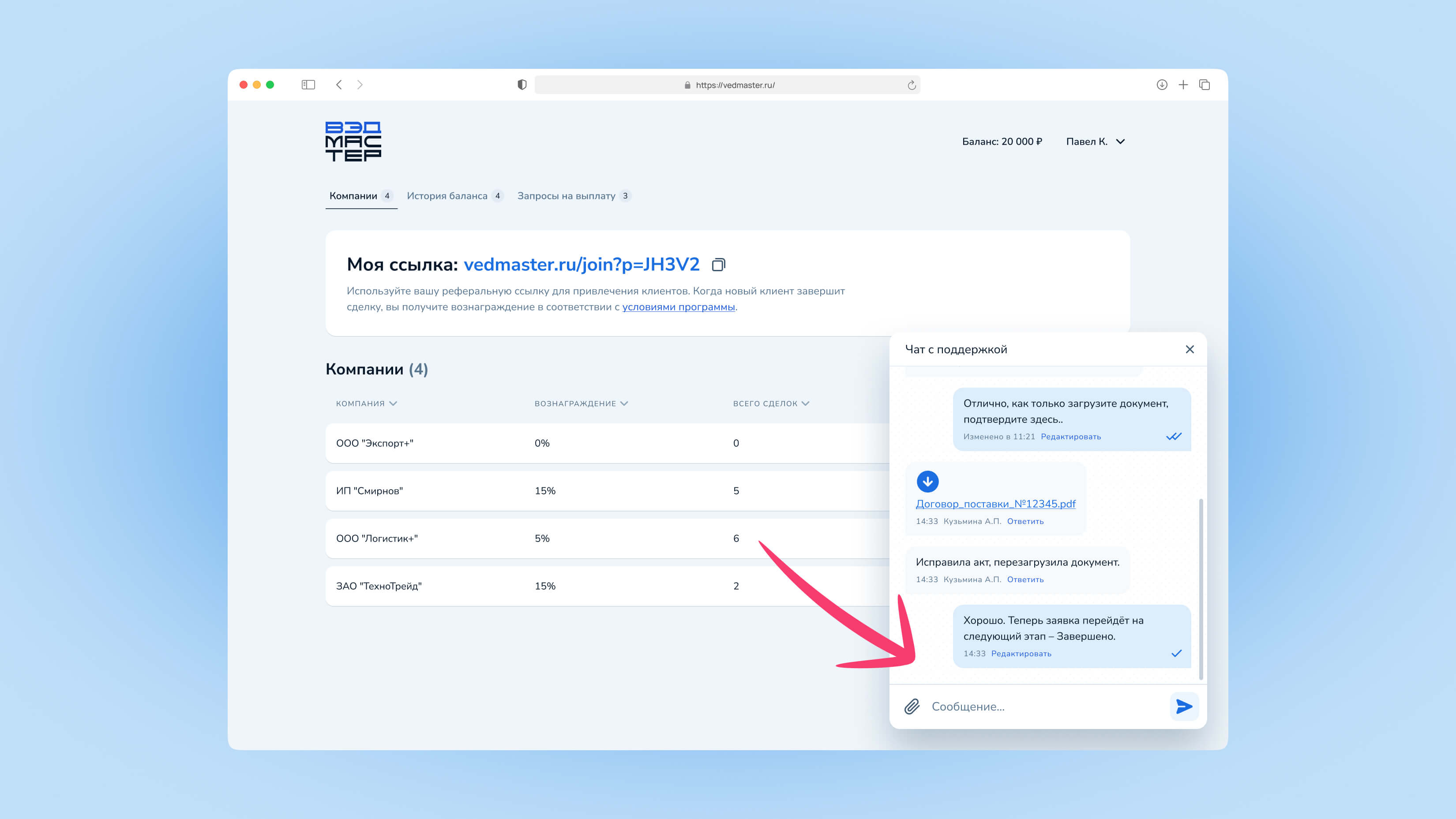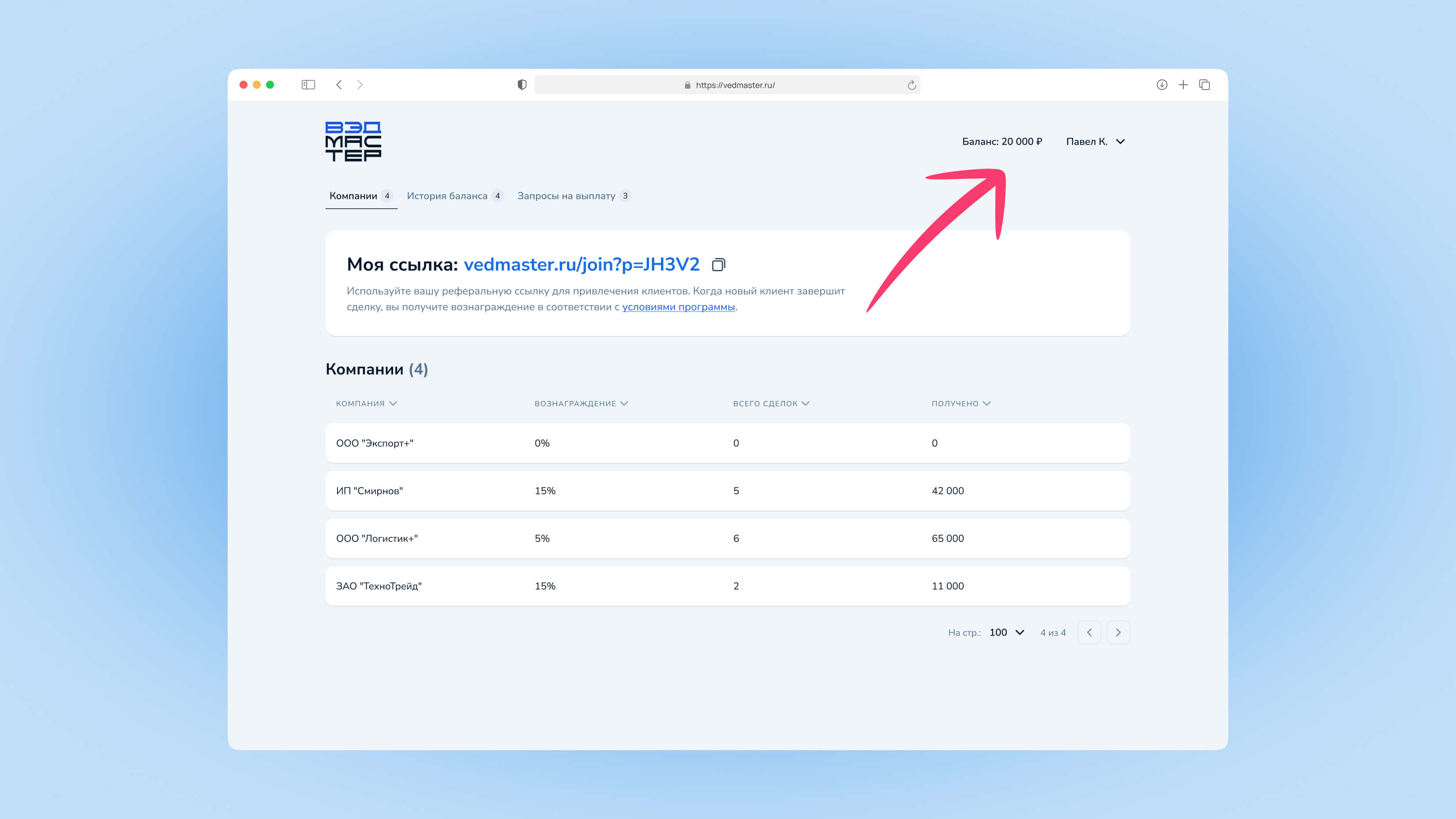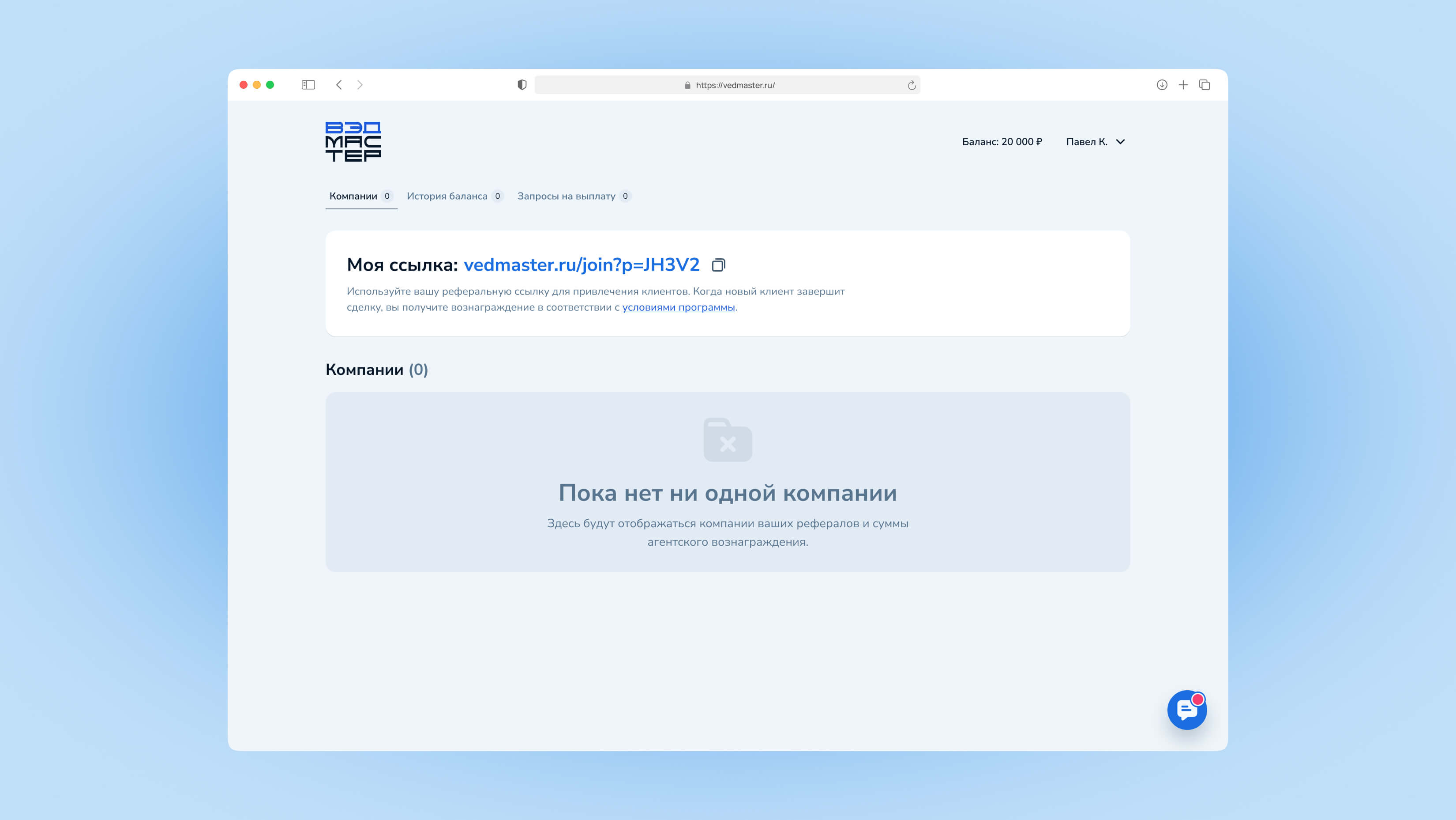 Это руководство поможет вам освоить работу в личном кабинете агента VedMaster: привлекать клиентов, отслеживать компании-партнёры и получать агентское вознаграждение.