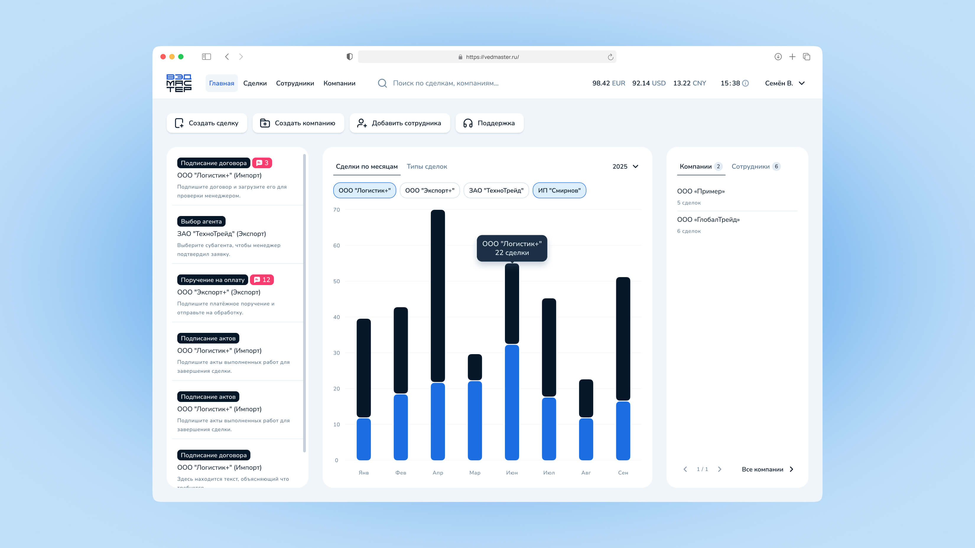 Это руководство поможет вам выполнить авторизацию в системе VedMaster для доступа к личному кабинету и управлению сделками внешнеэкономической деятельности.