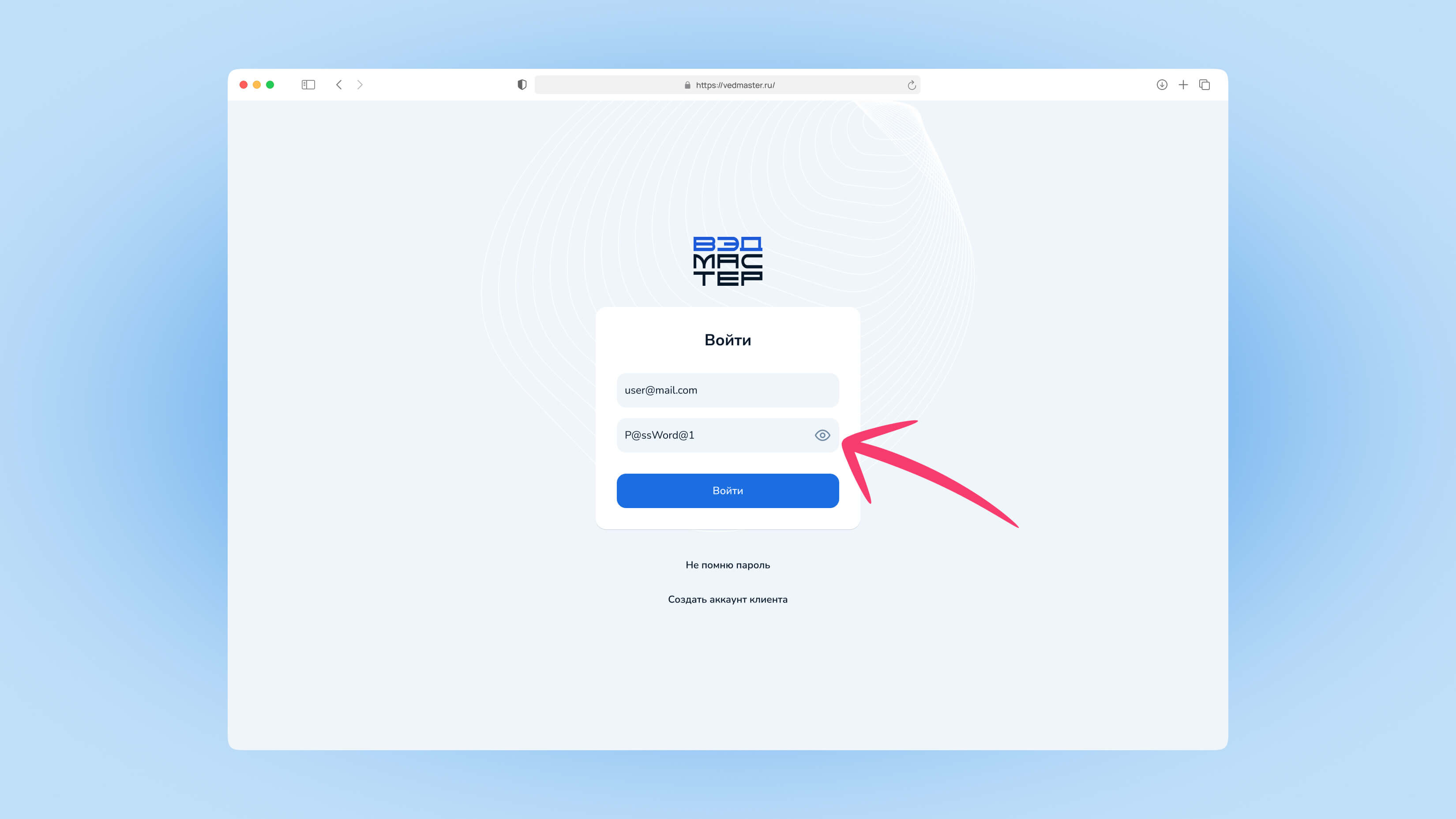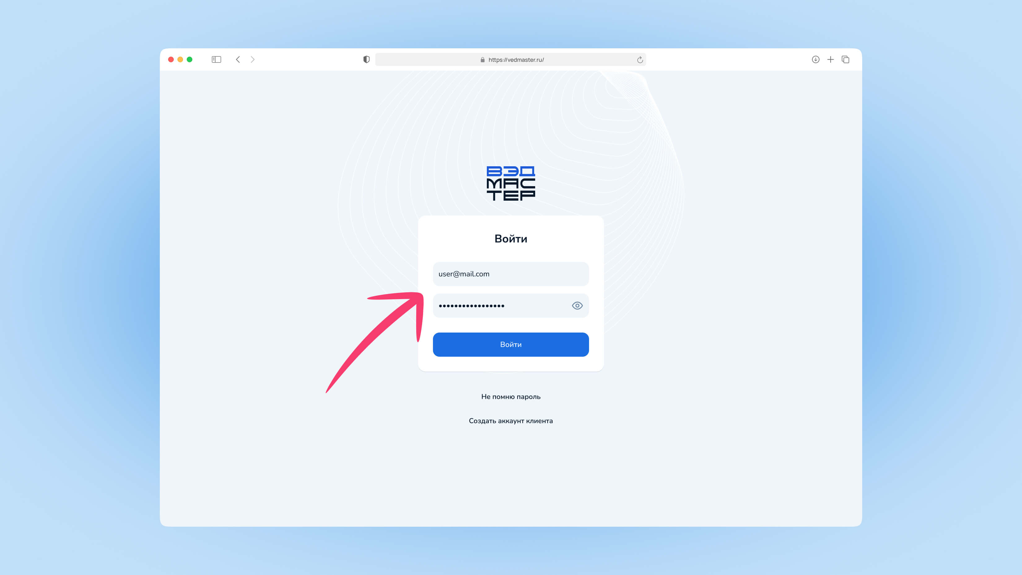 Перейдите по адресу app.vedmaster.ru/log-in