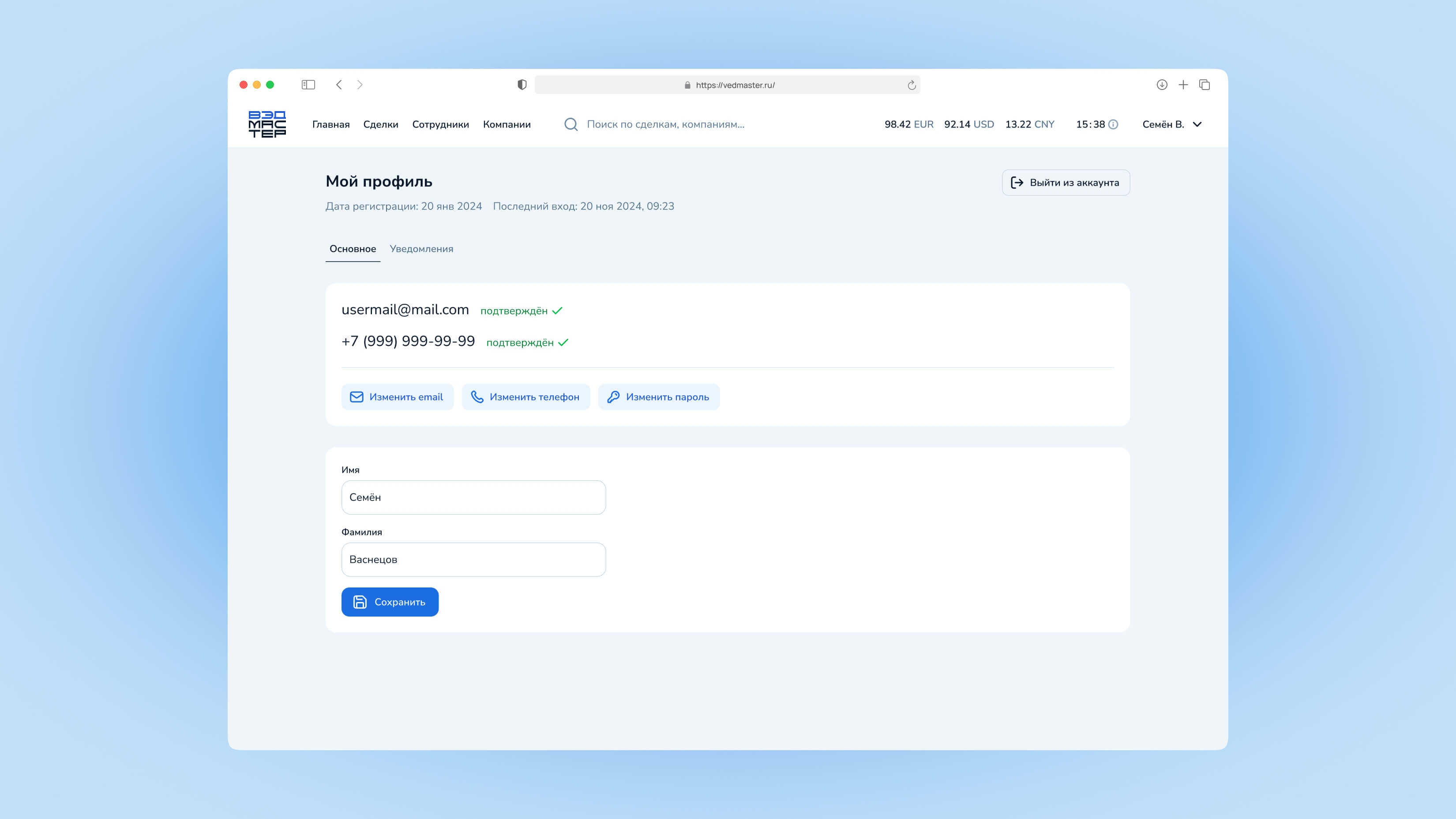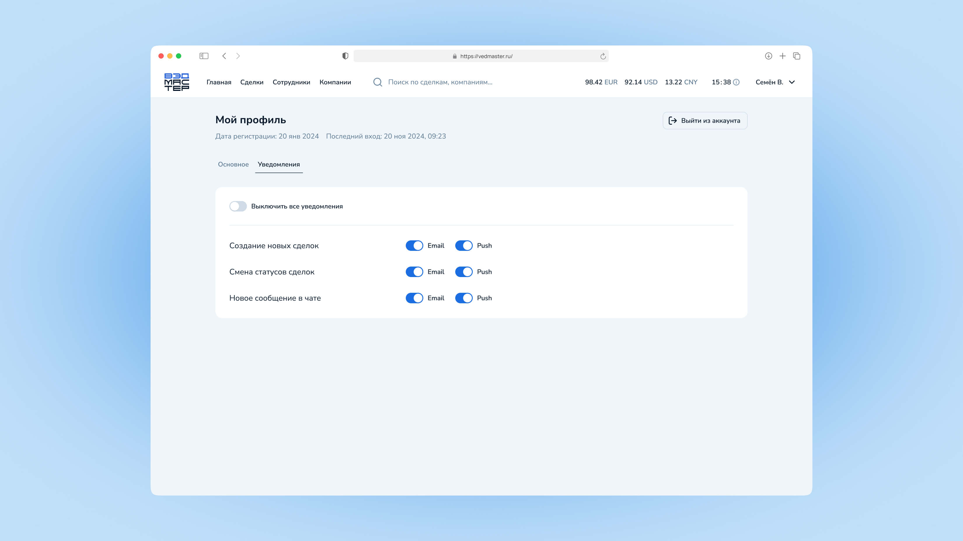 Это руководство поможет вам управлять личными данными, настройками уведомлений и безопасностью вашей учётной записи в системе VedMaster.