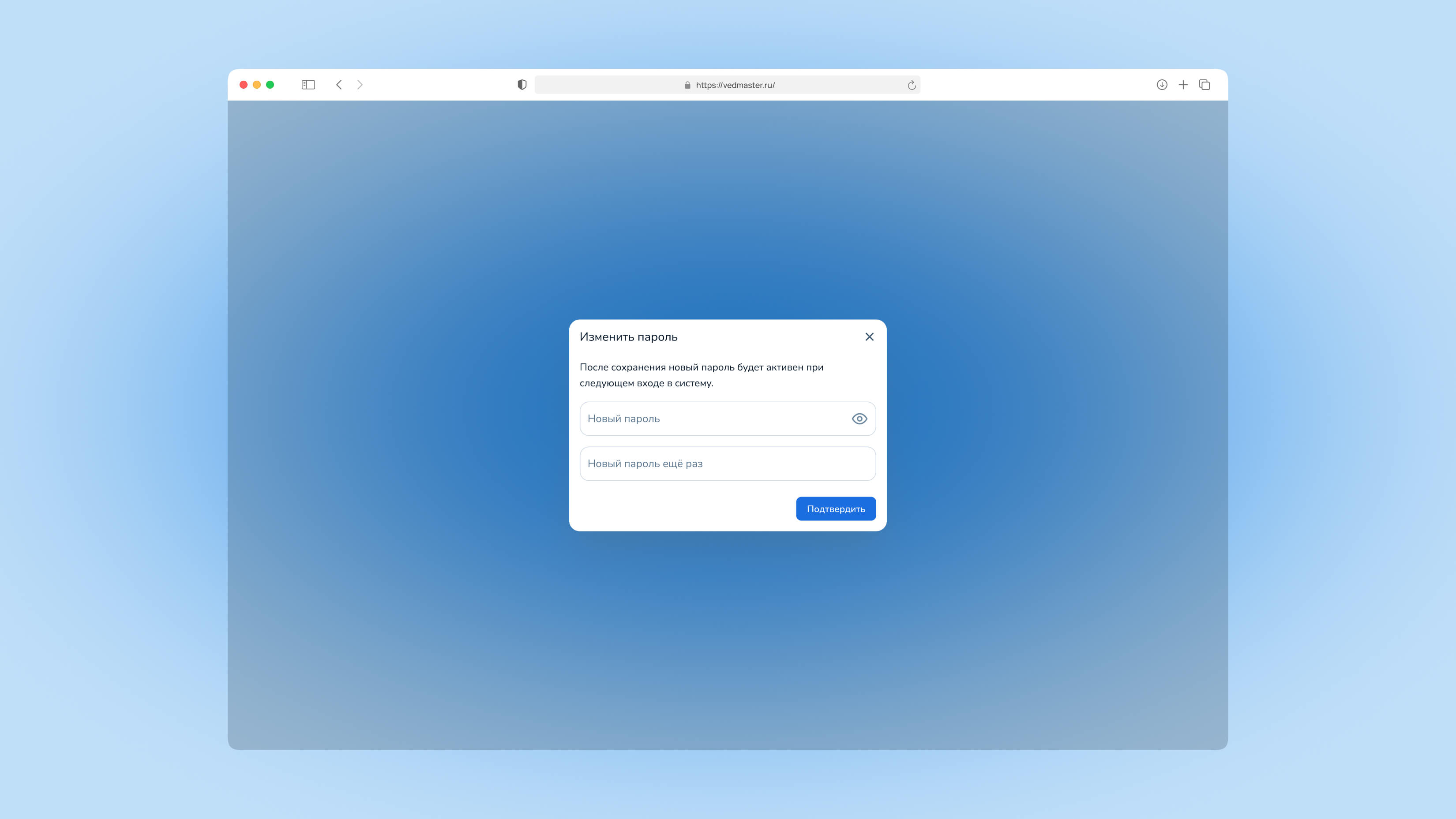 Рисунок 3. Модальное окно смены пароля